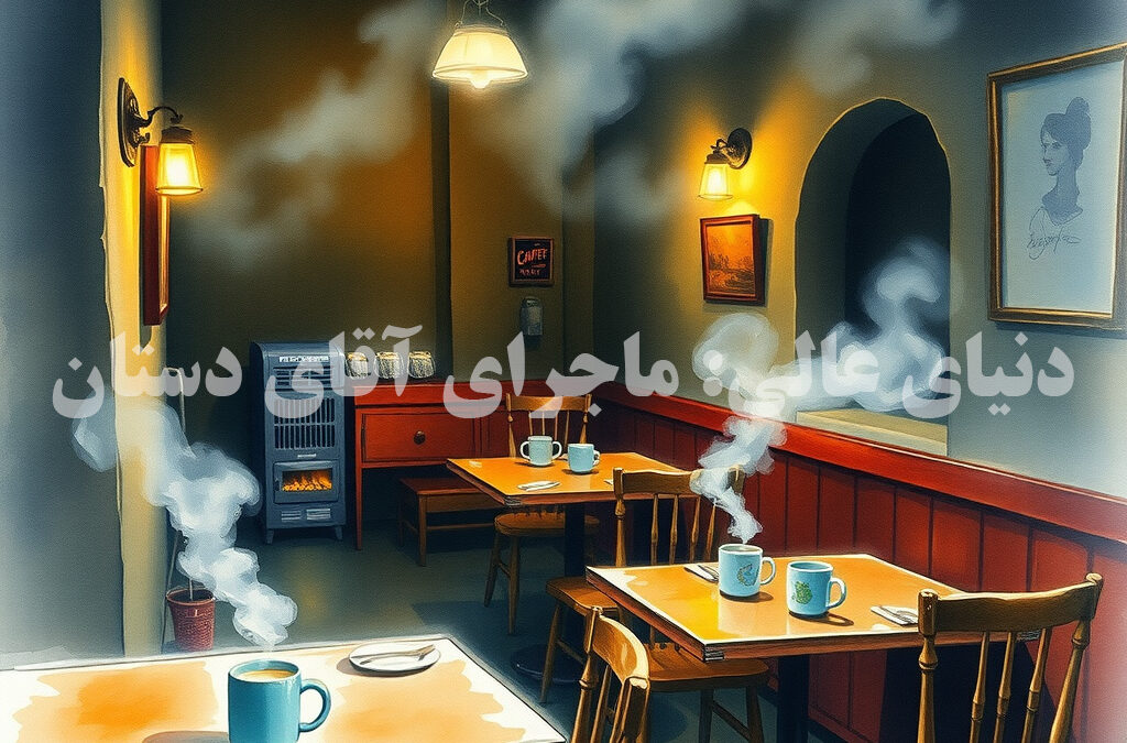 در کافه آقای دستان به کافه رسید. از پله ها پایین رفت و در کوچک را باز کرد و وارد شد. هوای گرم و دودآلود، چهرهها را در مه فرو برده بود.